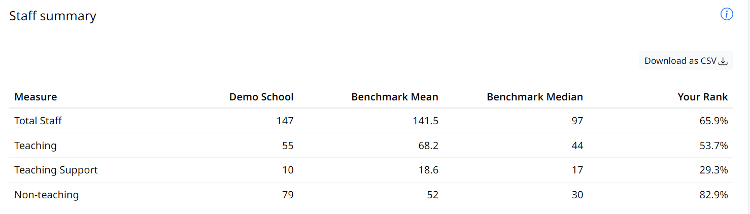 Staff summary table on Education summary page