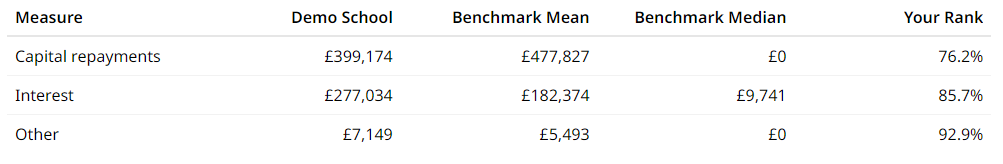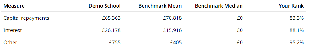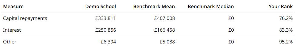 Long term borrowing summary table on Expenditure Borrowing Costs page